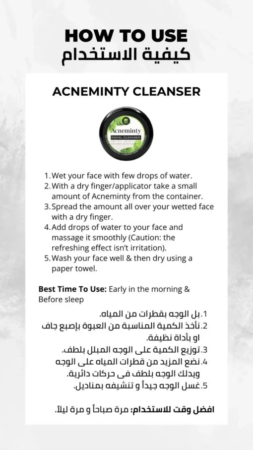 An all-around solid cleanser! Drawing excess oils with the activity of rhassoul clay. Deeply pore cleansing with a strong action against bacteria done by aloe vera extract with Tea tree & peppermint oils. It doesn’t dry out your skin, it will leave your skin smooth and hydrated for a long time.